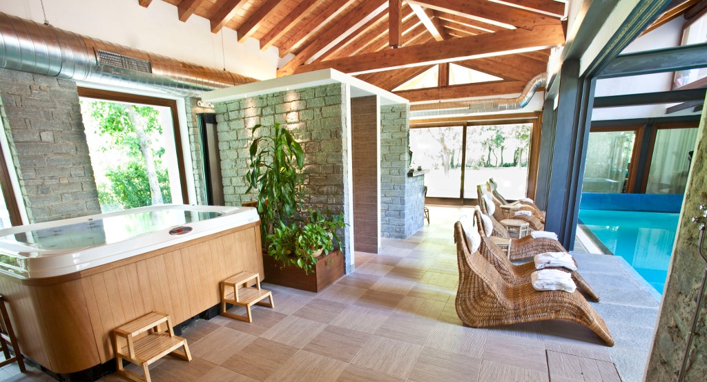 Percorso Benessere: piscina riscaldata, sauna, bio -sauna, bagno turco, vasca idromassaggio, docce aromatiche, area tisaneria e relax.